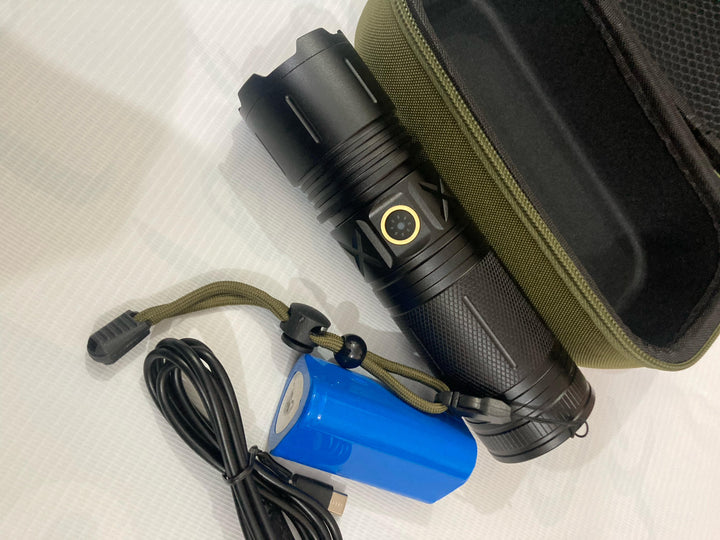 100,000 Lumens & Super Bright -The LED flashlight has built-in advanced P90.2 LED chip, the light is stable and bright, providing you with a bright world of light all the time. 100,000 lumens can easily illuminate an entire room or focus on objects up to 1640 feet away, allowing you to use it as a long-range flashlight.